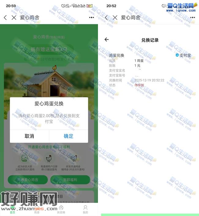 支付宝扫底部二维码 鸡蛋兑换现金即可 现金审核通过到账