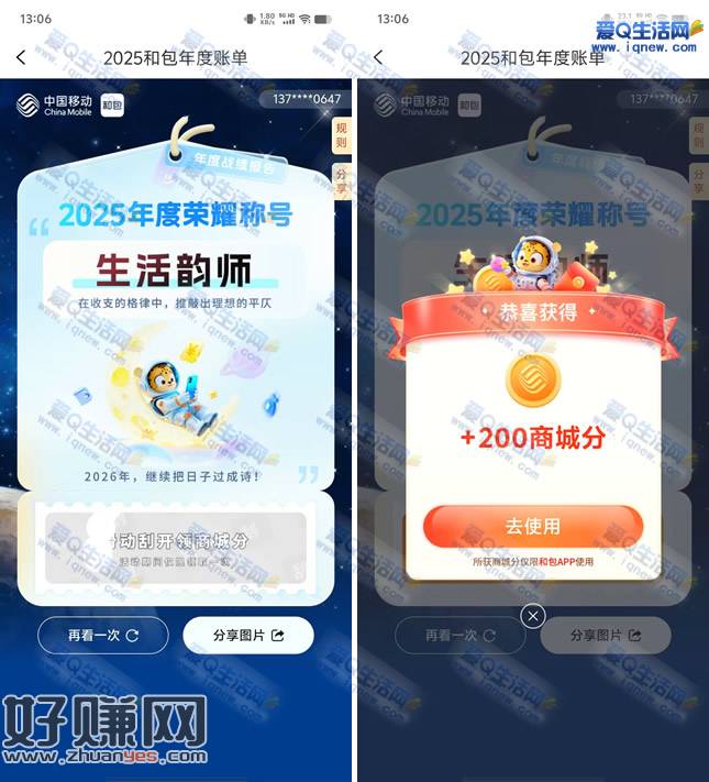 和包年度账单抽最高888商城积分 亲测200积分