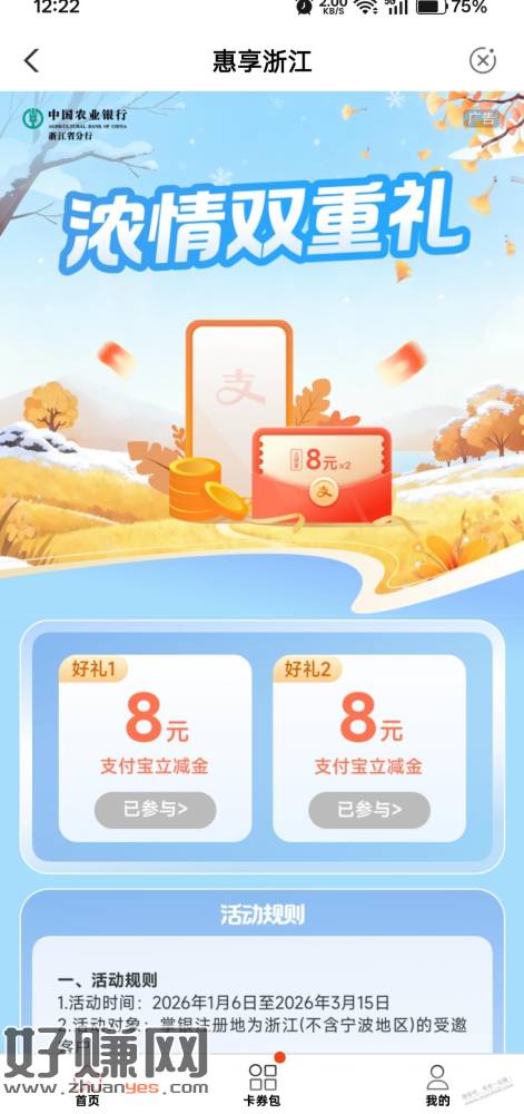 首页城市专区,惠享浙江,下拉找到浓情双重礼
