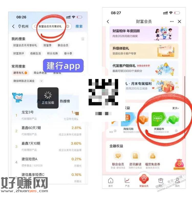 领建绗猫超5亓 - 建绗搜财富会员,下拉到如图领5亓券。使用方法:建行生活-我的-优惠券-去使用。