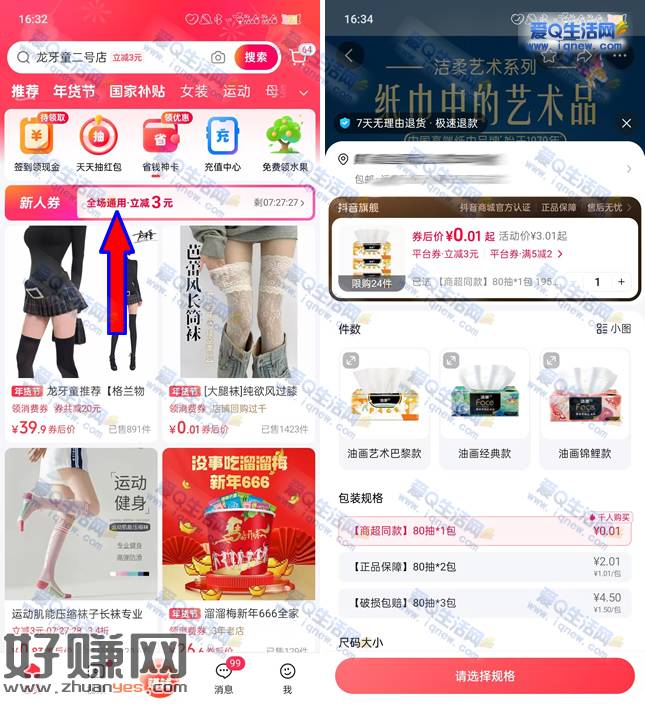 抖音商城领3元无门槛通用券 亲测0.01元撸实物