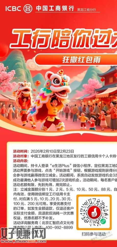 限黑龙江 工珩xyk立减琻 - 识别小程序码玩简单游戏,得1~88亓,每人5次机会,