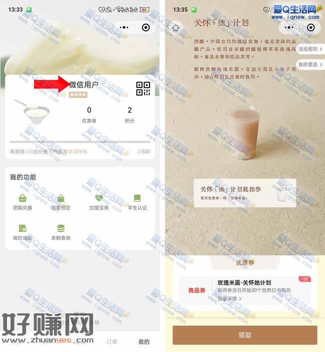 兔费领宝珠奶酪玫瑰米露 每月可领取一杯