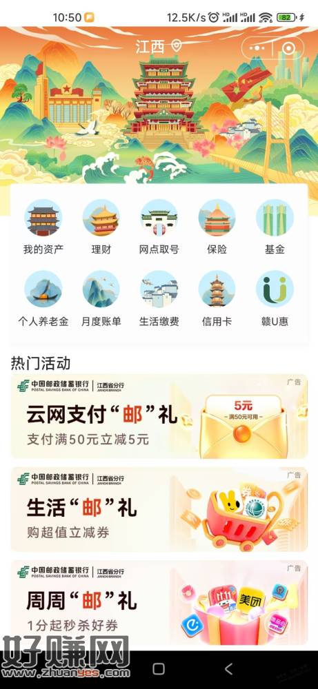 短信链接跳转邮政储蓄银行有三个活动都领一下,第一二个5元可以直接/xbhd/1205006.html扫邮储APP付款码套,第三个我选移动充话费用云闪付跳转邮储付款