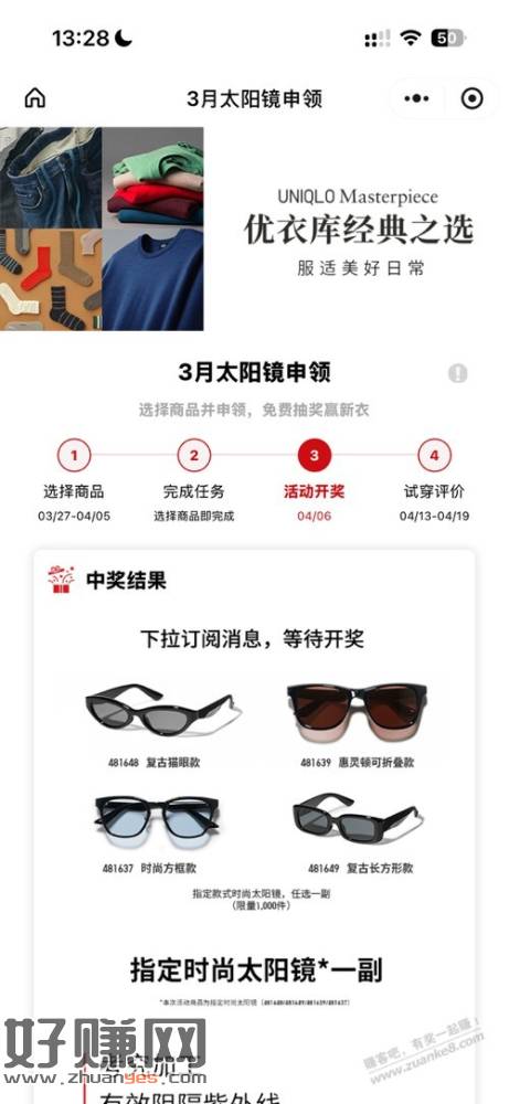 V打开 优衣库免费送1000份太阳镜