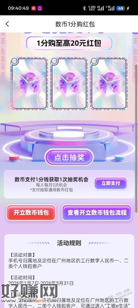 工银e生活app,一分钱买数币红包,最低5元,可以买2次,共10元 通用红包,满15使用,可以支付宝还xing/用卡