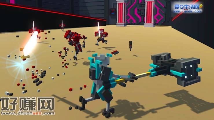 《机器人角斗场》是一款第三人称刀剑格斗游戏,在游戏中你身体的任何部位都有可能被削的七零八落