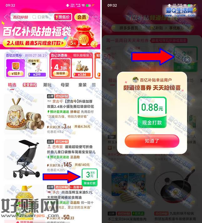 拼多多百亿补贴天天来抢券 亲测0.88元现金
