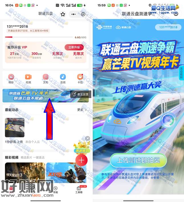 联通云盘测速赢最高芒果TV年卡 三网可参与