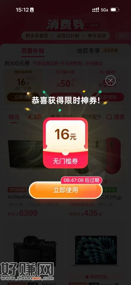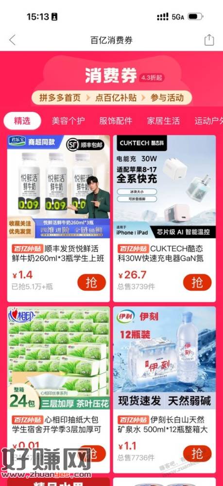 百亿补贴,消费券,限时抽奖(有些号可能没有) 中了以后可以1分钱买纸